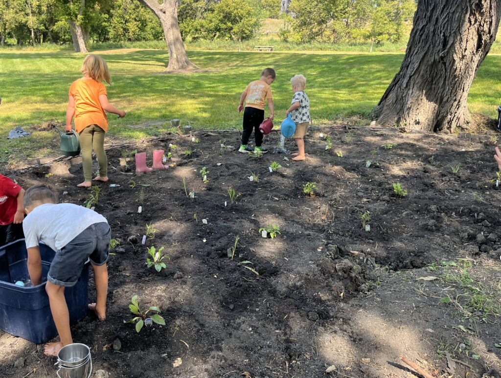 09-09-2025 – Many helpers available to help plant and water. Pollinators are off to a good start.